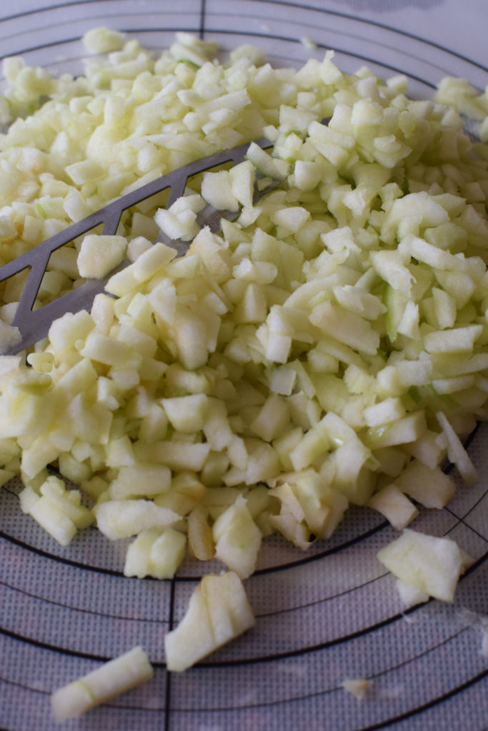 • 1 cup of peeled apples (any kind), diced small (or 1/2 cup applesauce)