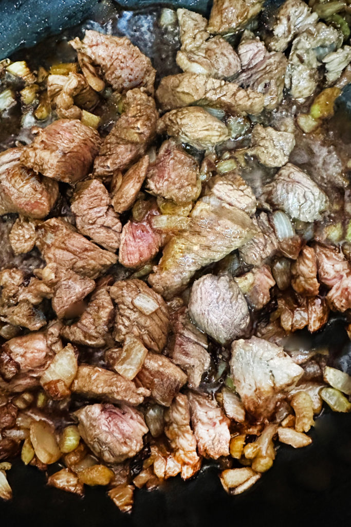 - 1 1/2 pounds beef, cut into bite-size pieces (approximately 1"x1")
