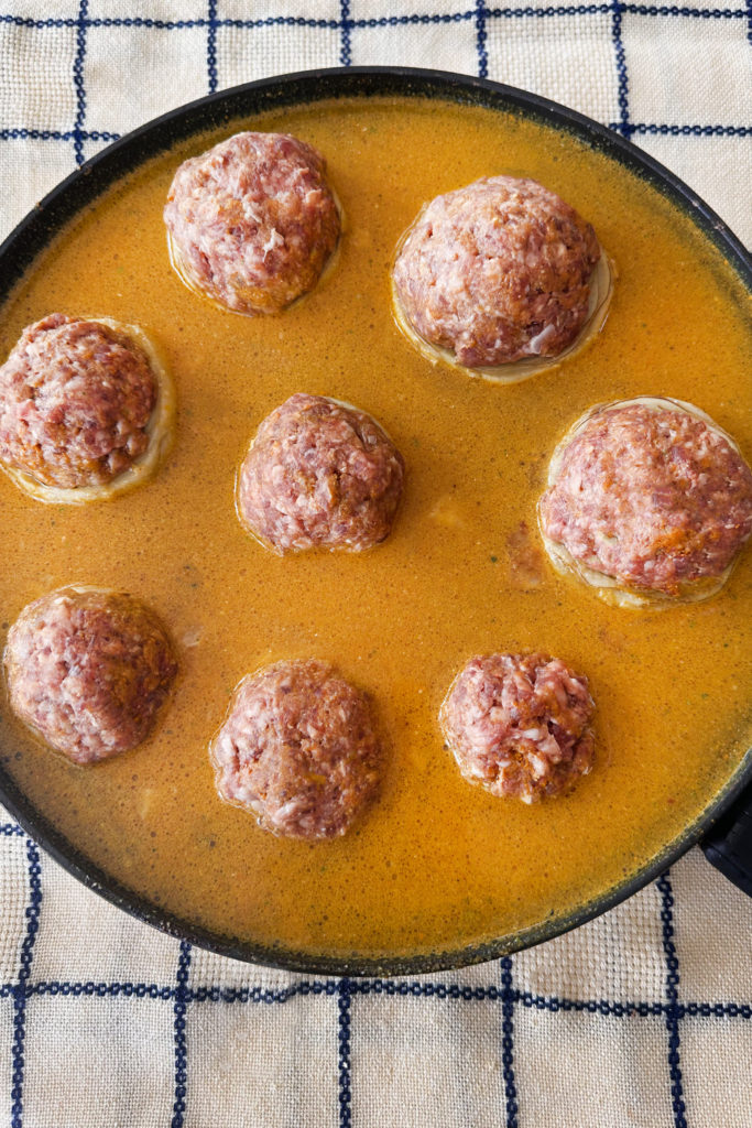 Israeli-Style Stuffed Artichoke Bottoms is a classic savory Mediterranean dish of tender artichoke hearts filled with a flavorful ground beef filling, cooked in a delicious sauce, with the warm, earthy, Middle Eastern flavor of cumin.